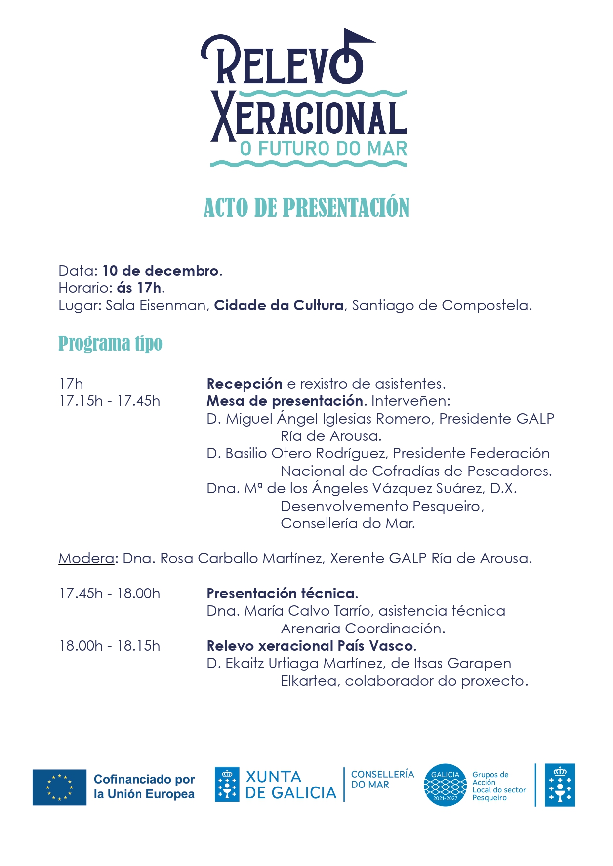 O Acto oficial de presentación do proxecto “Relevo Xeracional: O Futuro do Mar” terá lugar o:
