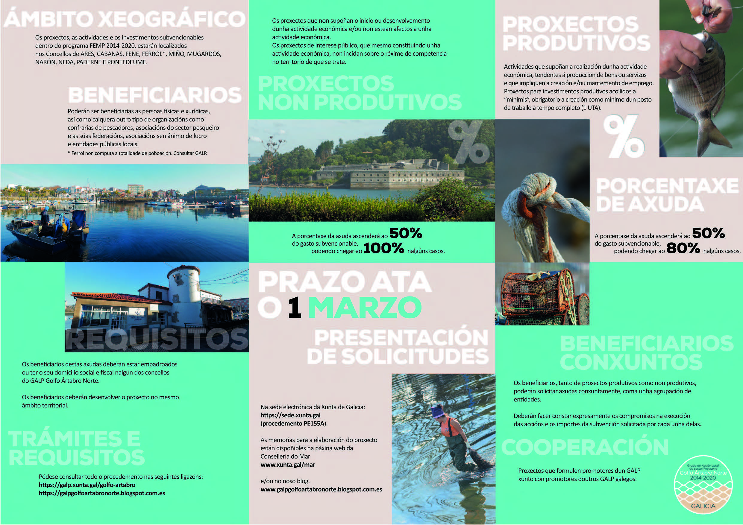 Publicado un novo folleto para darlle difusión ás axudas do Programa FEMP 2014-2020 no ámbito territorial do GALP Golfo Ártabro Norte: Paderne, Miño, Pontedeume, Cabanas, Ares, Mugardos, Fene, Neda, Ferrol e Narón.